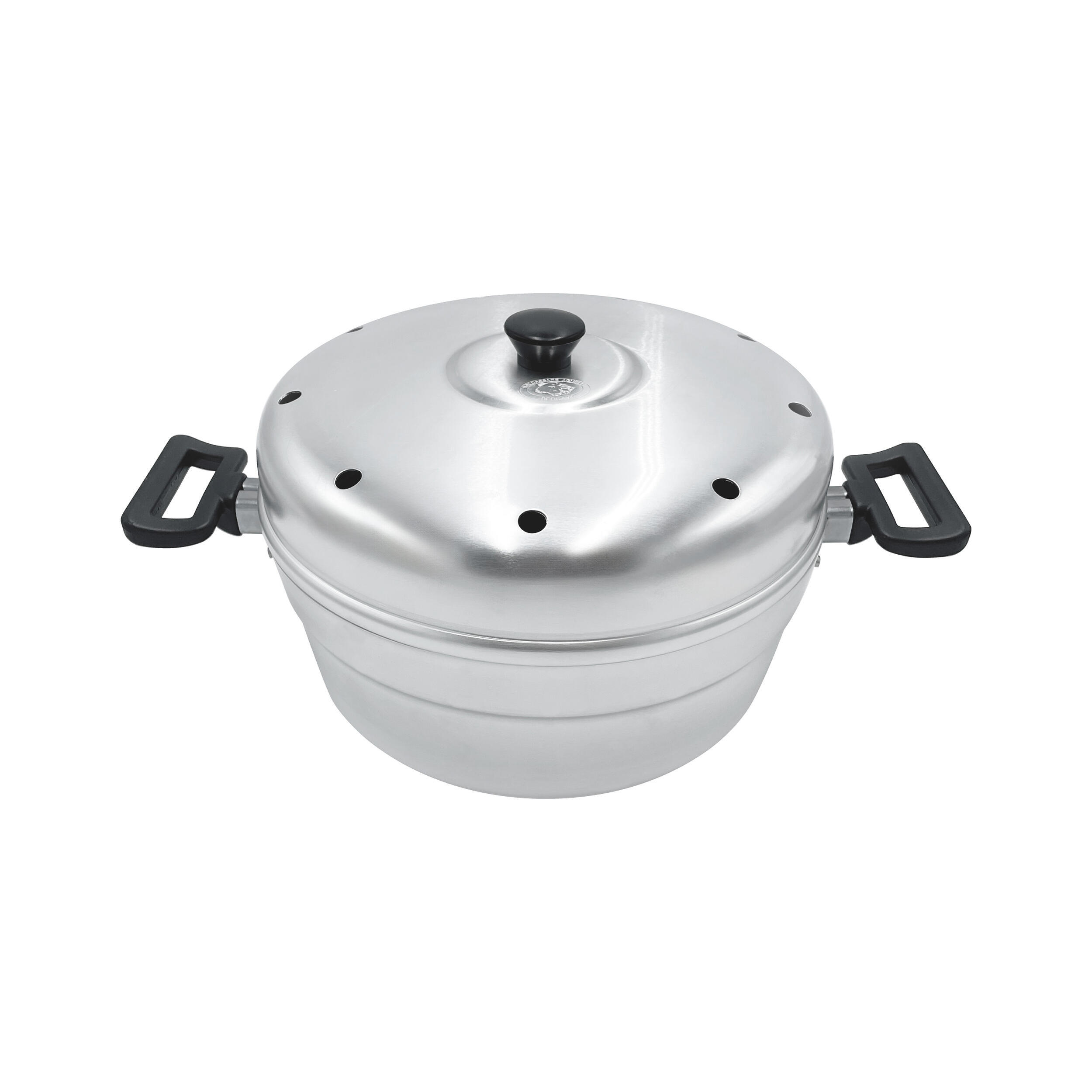 Fabriqué en Italie, ce four nomade mise sur une structure en aluminium pur à 99,5 %, d’une épaisseur de 2 mm, pour une durabilité à toute épreuve. Son couvercle équipé de 6 trous de ventilation assure une cuisson uniforme, tandis que son brûleur distributeur en acier garantit une flamme stable, même en cas de mouvements ou de vents légers. Les poignées latérales en plastique noir, rivetées pour plus de solidité, restent froides au toucher et facilitent la manipulation. Son rebord roulé et sa base légèrement surélevée renforcent l’étanchéité et la stabilité, des détails essentiels pour une utilisation en conditions réelles, sur une table de camping ou un plan de travail étroit.