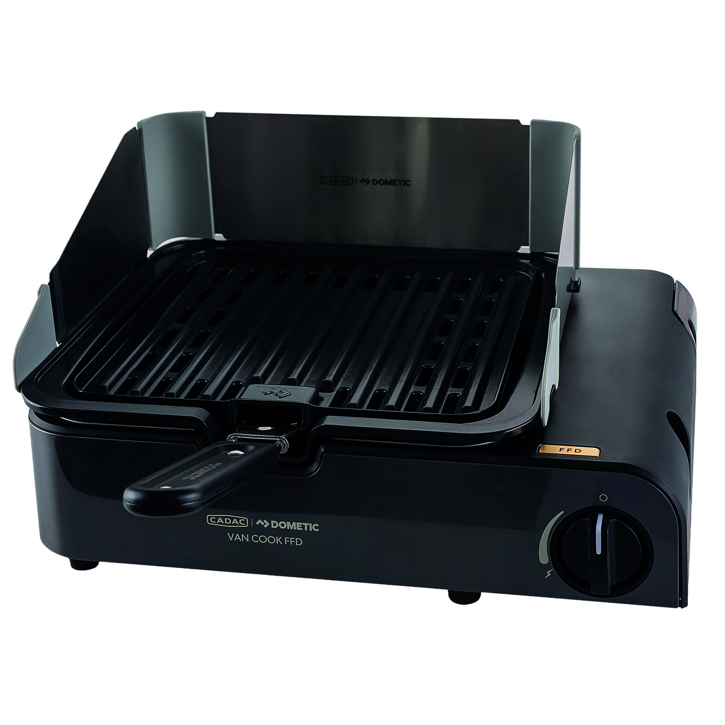 Barbecue / Réchaud Cadac FFD BBQ Plate à gaz propane, 1 brûleur 1,6 kW, allumage piézoélectrique, avec accessoires et sac de transport.