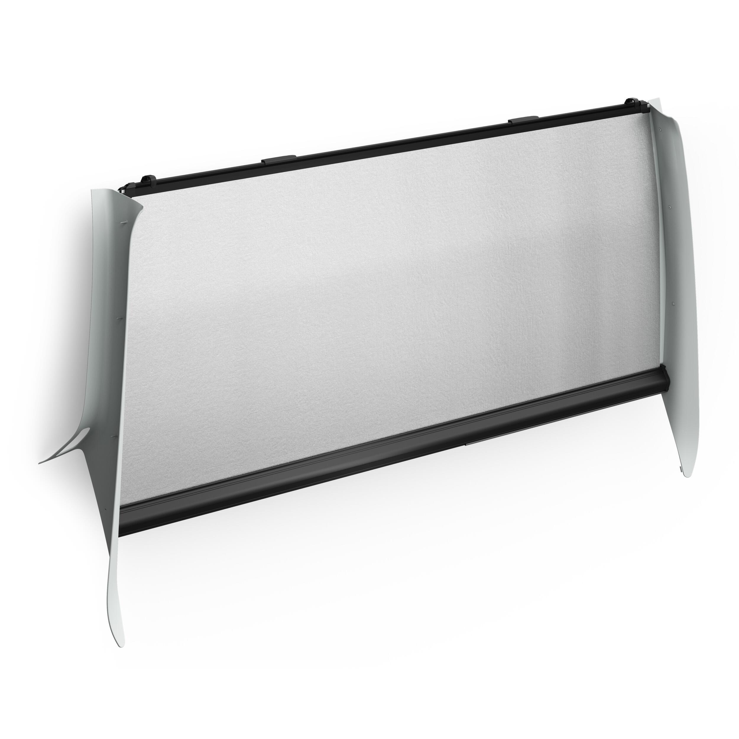 Le store est réglable sur quatre positions afin de s’adapter aux besoins d’usage. Son tissu est revêtu d’aluminium, contribuant à la protection solaire et à l’isolation thermique à l’intérieur du véhicule.