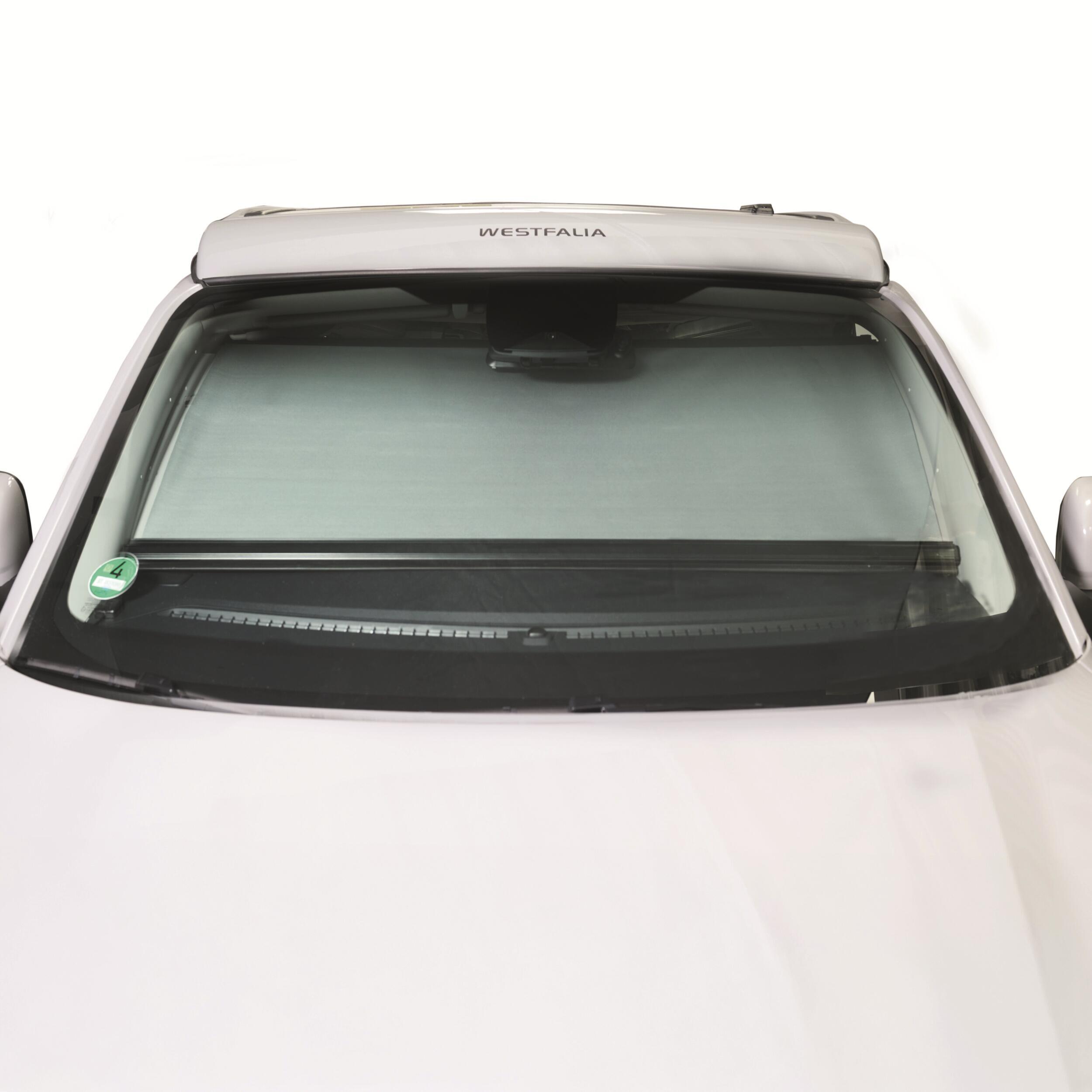 Store occultant de pare-brise Dometic FR 500 pour Ford Transit Custom V710 à partir de 2016, avec tissu revêtu d’aluminium et réglage sur quatre positions.