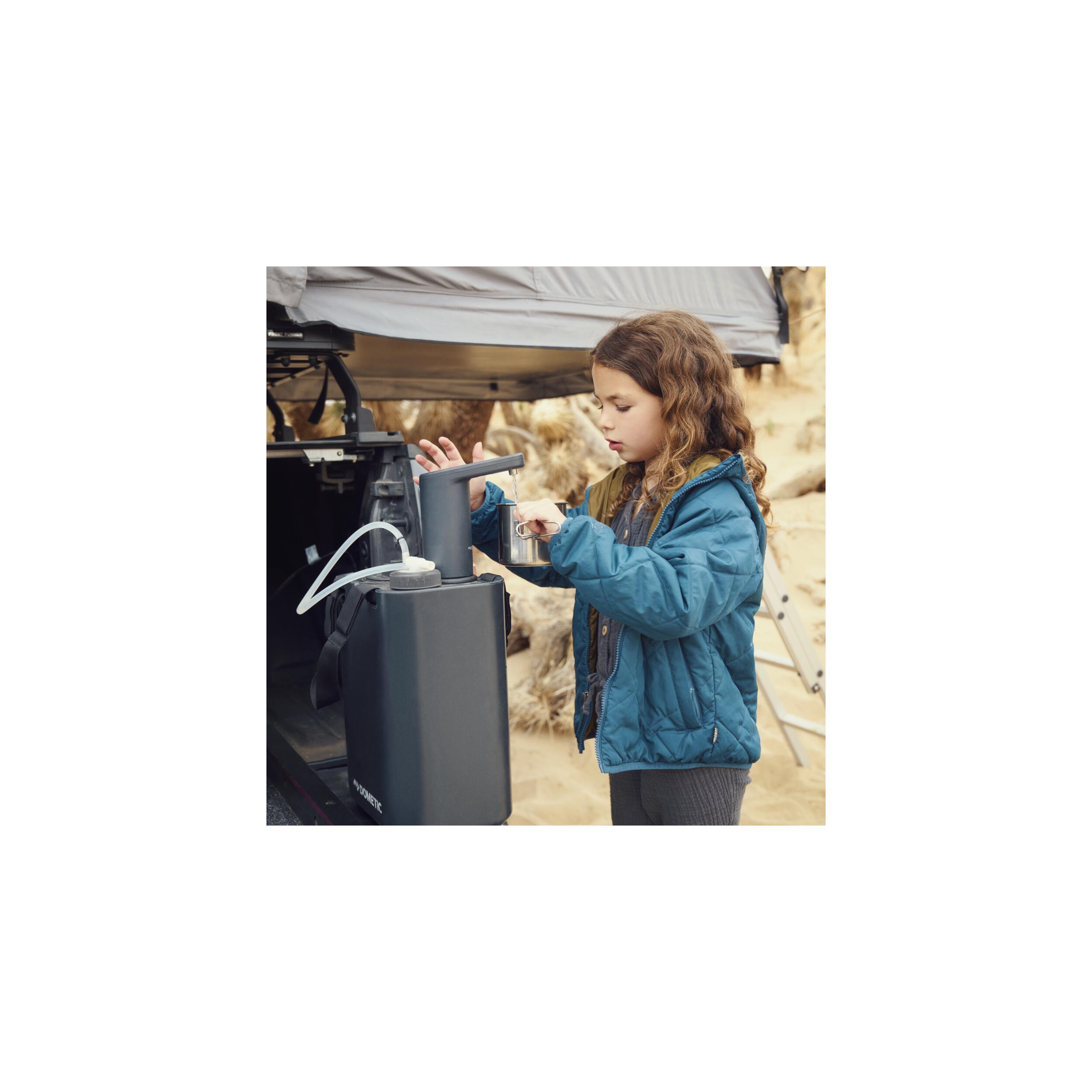 Le robinet d'hydratation Dometic fournit de l'eau courante d'un simple toucher. Avec pompe auto-alimentée, batterie rechargeable et 150 litres distribués par charge, il transforme n'importe quel récipient en source d'eau pratique.