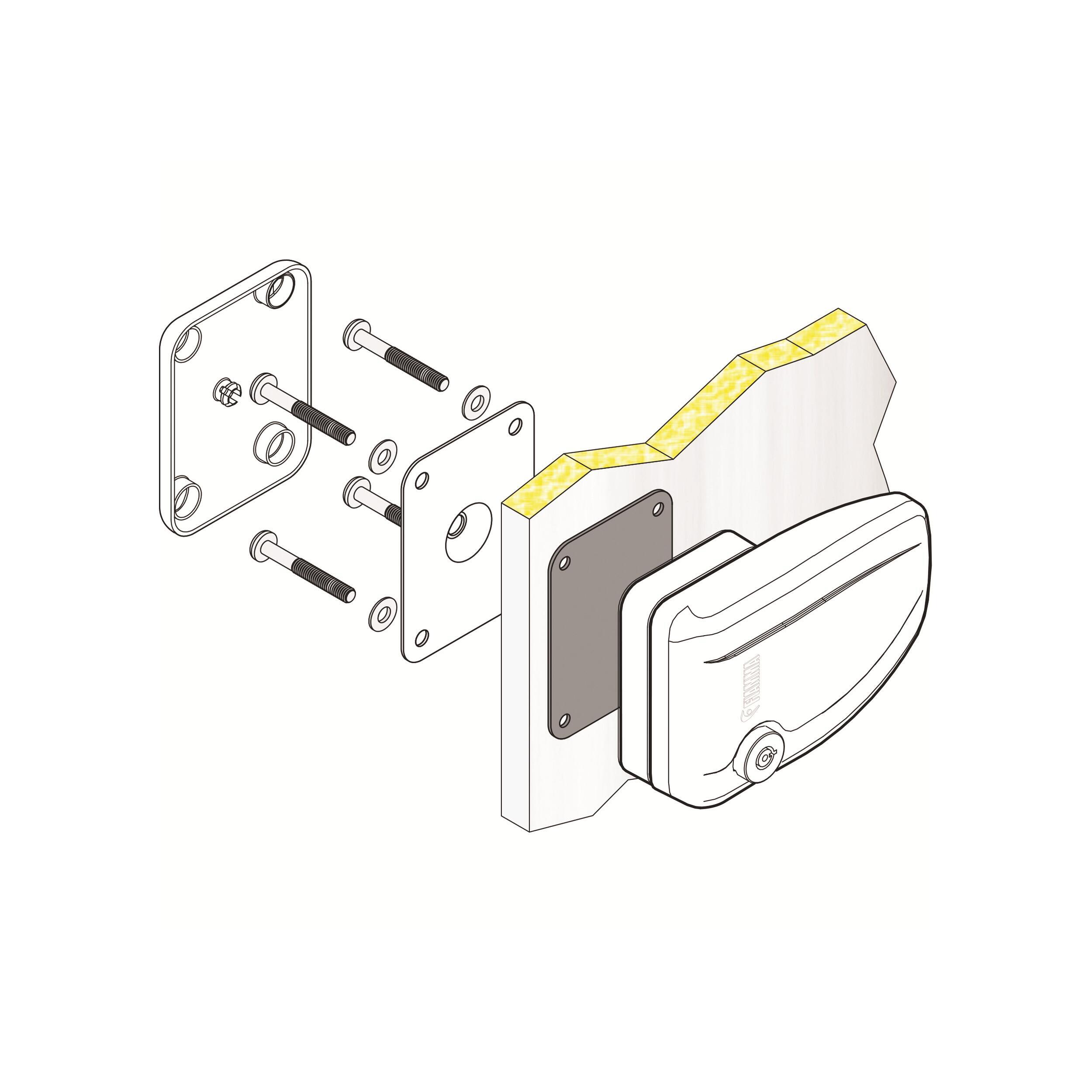 Montage sur la paroi avec 4 vis autotaraudeuses.