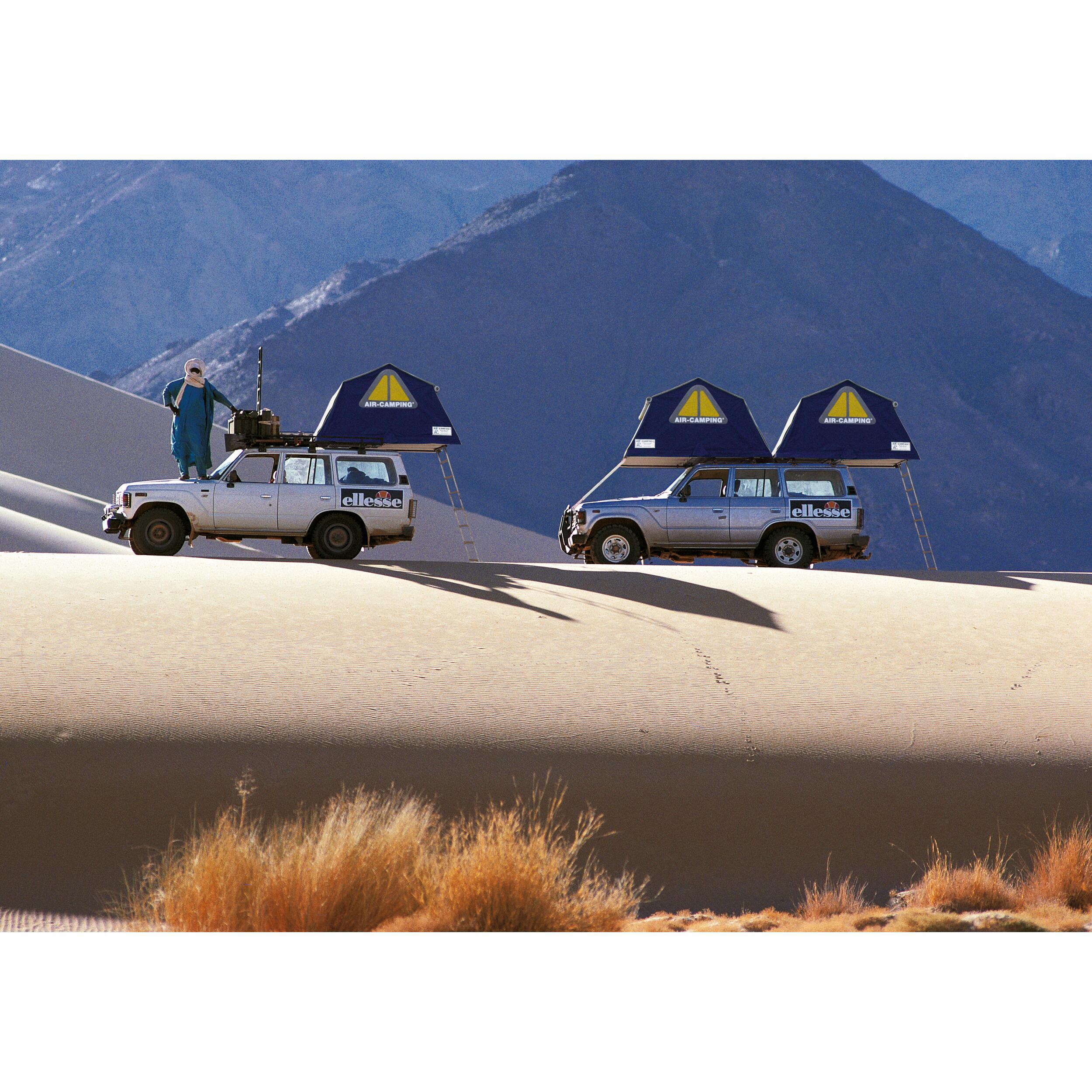 Brevetée en 1959, la Air-Camping est la première tente de toit pliante en toile jamais commercialisée. Son savoir-faire repose sur plus de 60 ans d’expériences cumulées sur les pistes d’Amérique du Sud, en Afrique, dans le désert et les glaces. Chaque pièce, chaque détail, a été conçu pour résister à l’épreuve du temps, et a été validé en conditions réelles.