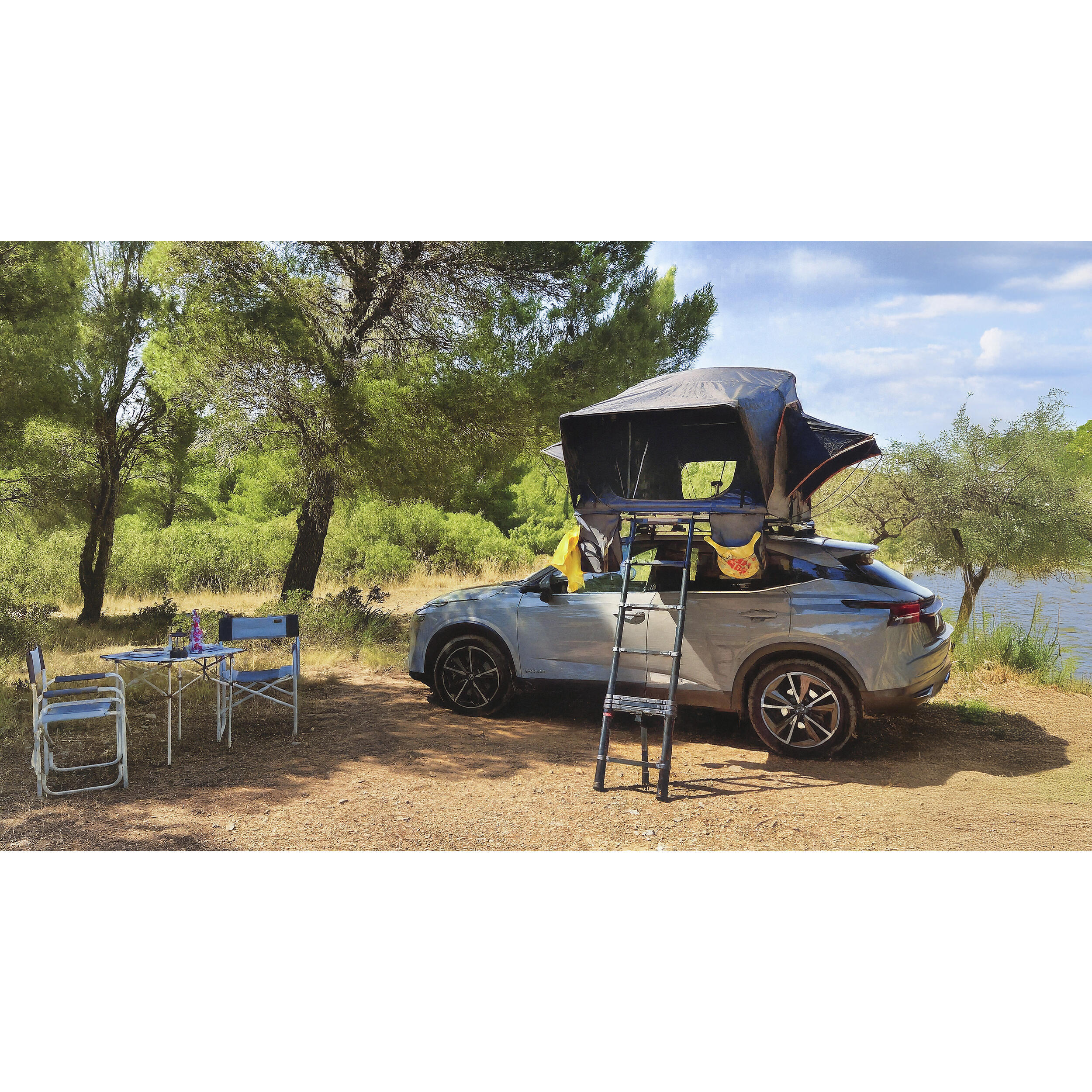 Tente de toit souple SOPLAIR Star Night pour 2 adultes, ouverture manuelle, toile polycoton 320 g/m² et protection pluie PU 10000 mm.