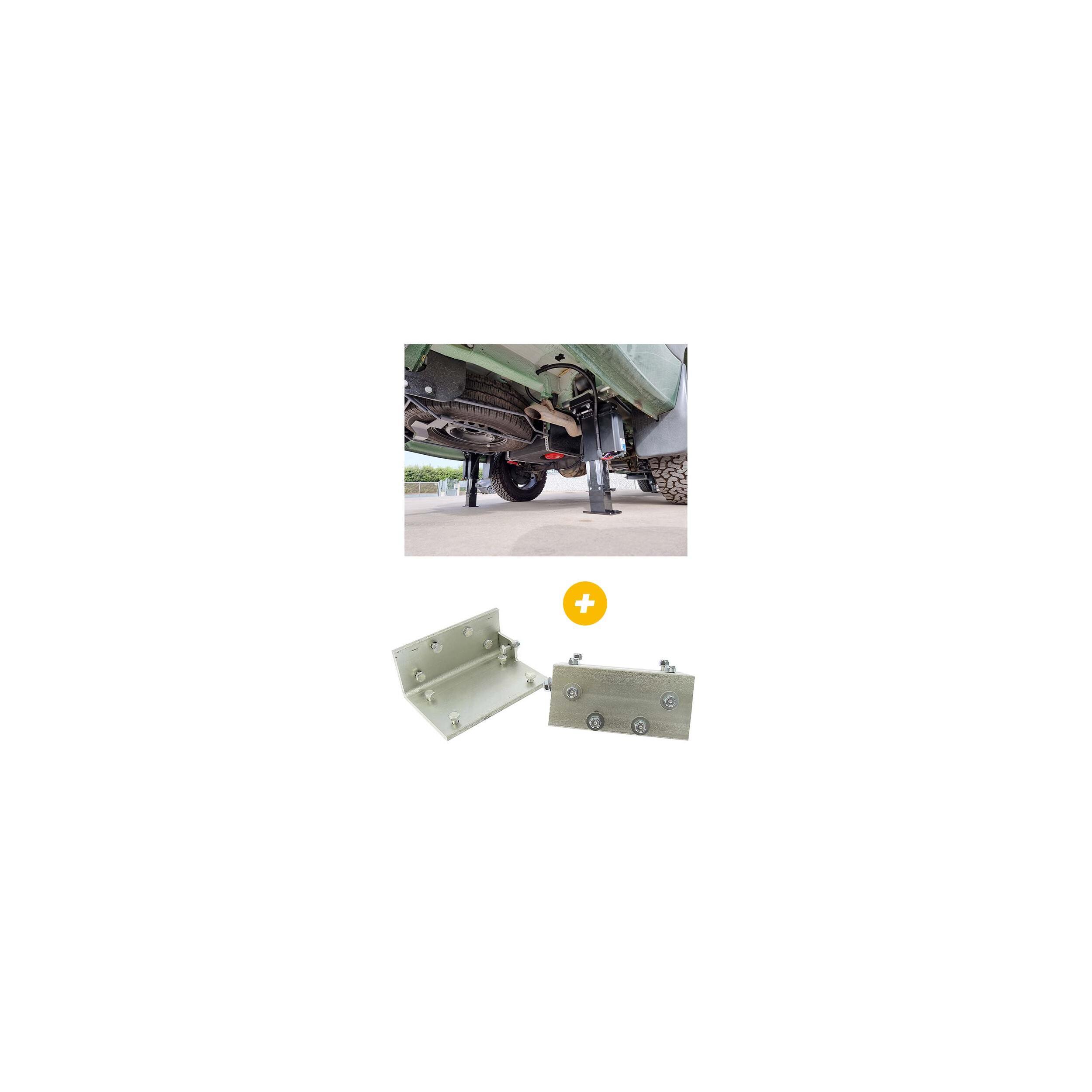 Afin d'assurer et renforcer la rigidité du châssis sur la partie arrière, l'ajout d'un kit d'adaptateurs spécifique au modèle du véhicule (non inclus) contenant les interfaces vérins/châssis et une barre de renfort de rigidité pour l'arrière est indispensable.