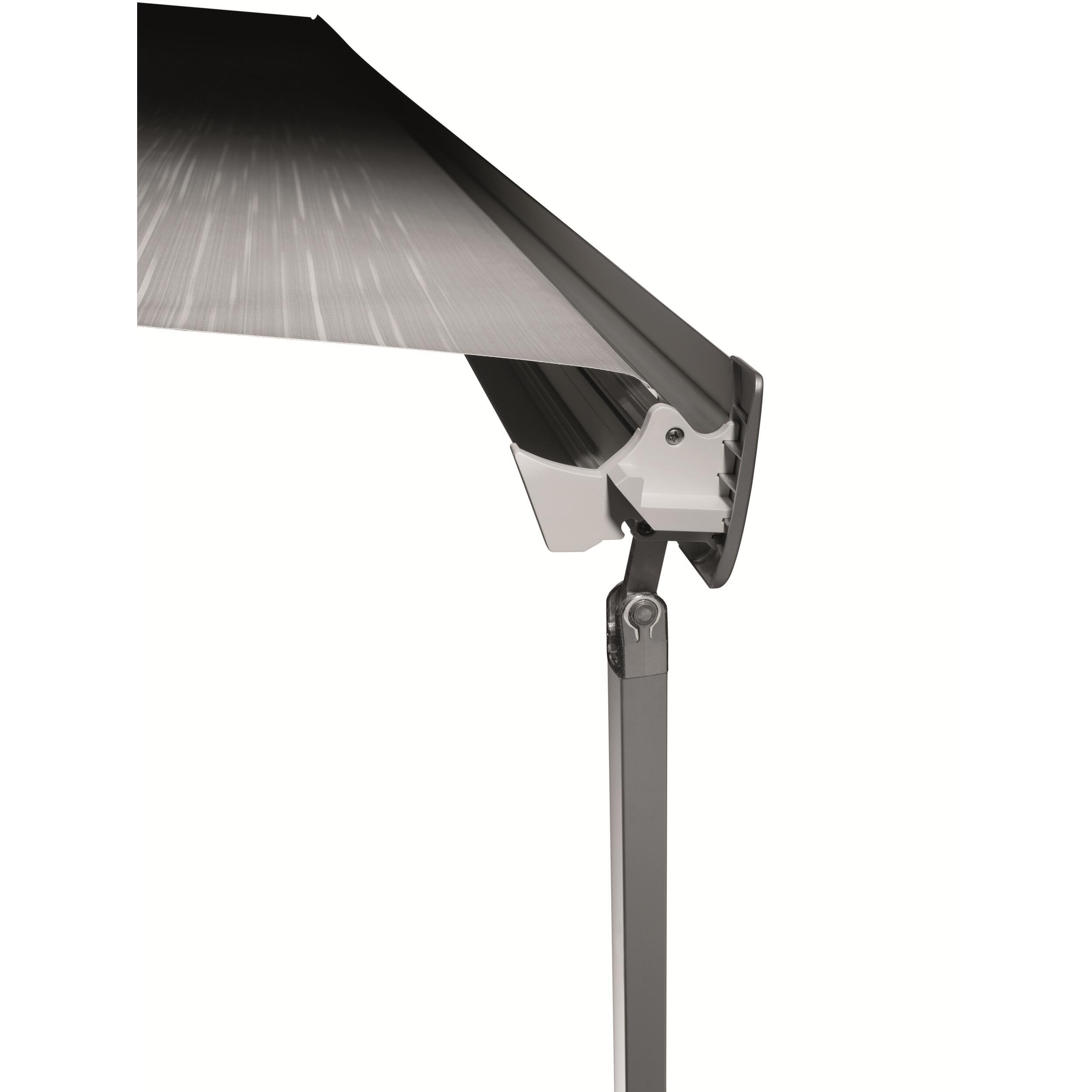 Grâce à son système de barres de tension intégrées, la toile est toujours parfaitement tendue, garantissant une meilleure résistance au vent et une protection optimale contre les intempéries. Son profilé avant avec système de drainage permet d’évacuer l’eau efficacement et simplifie le nettoyage du store après utilisation.