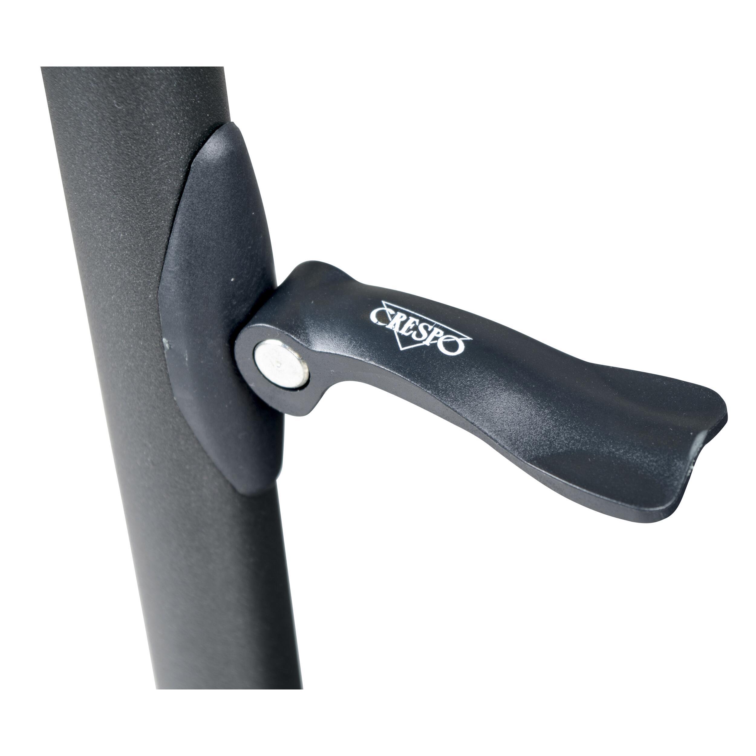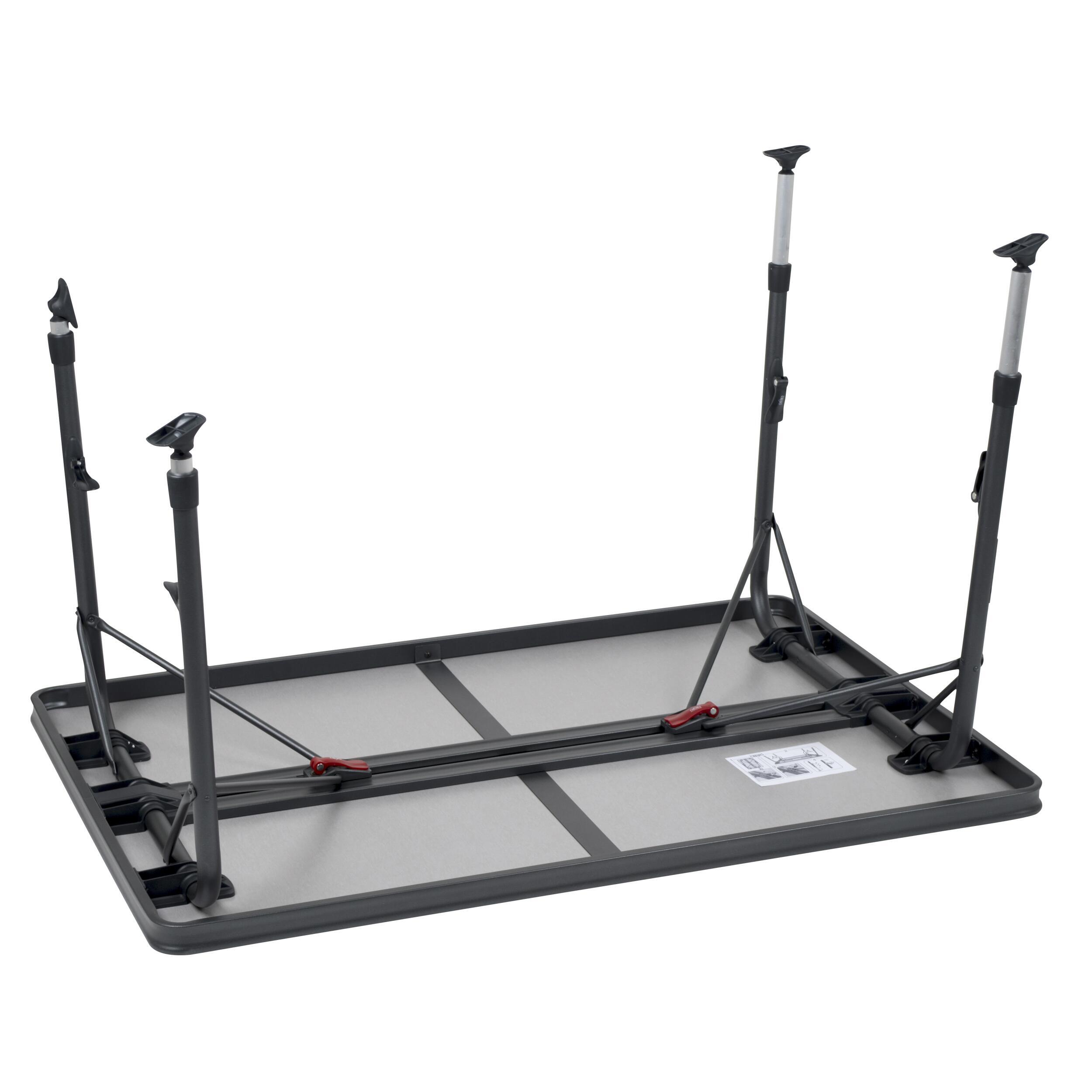 La table Crespo est très stable et légère, grâce à une structure en aluminium solide et ses pieds entièrement réglables en hauteur et équipés de patins stabilisateurs permettant de ne pas s'enfoncer dans le sol.