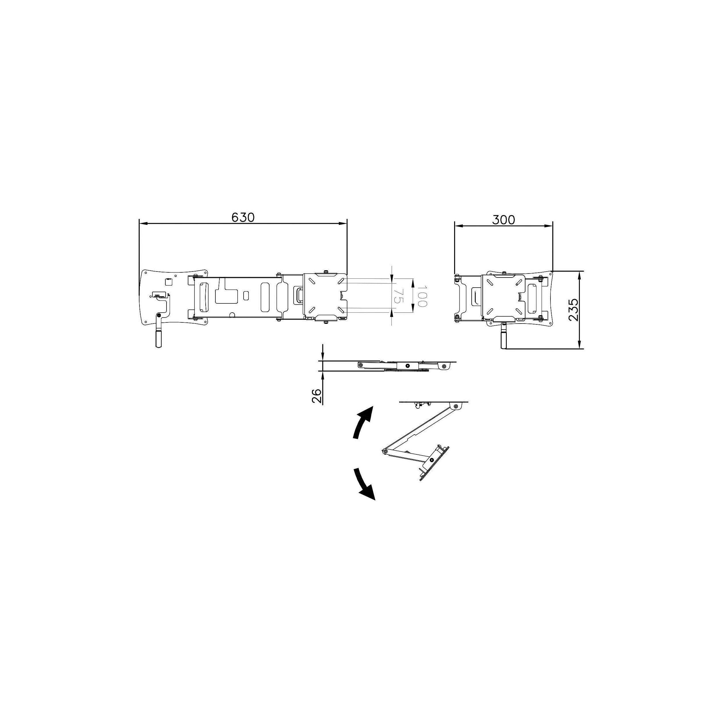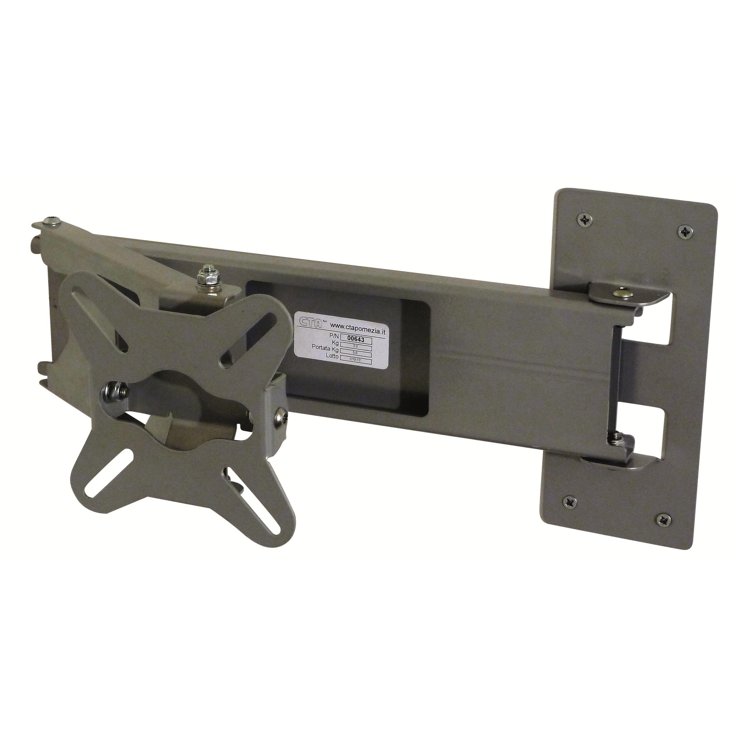 Compatibles système VESA. Acier avec peinture epoxy. Couleur : gris. Système de serrage précis sur bagues nylon. Inclinaison réglable. 3 articulations. Déport: 450mm. Poids: 2,0kg. Poids de portée maximale : 5 kg