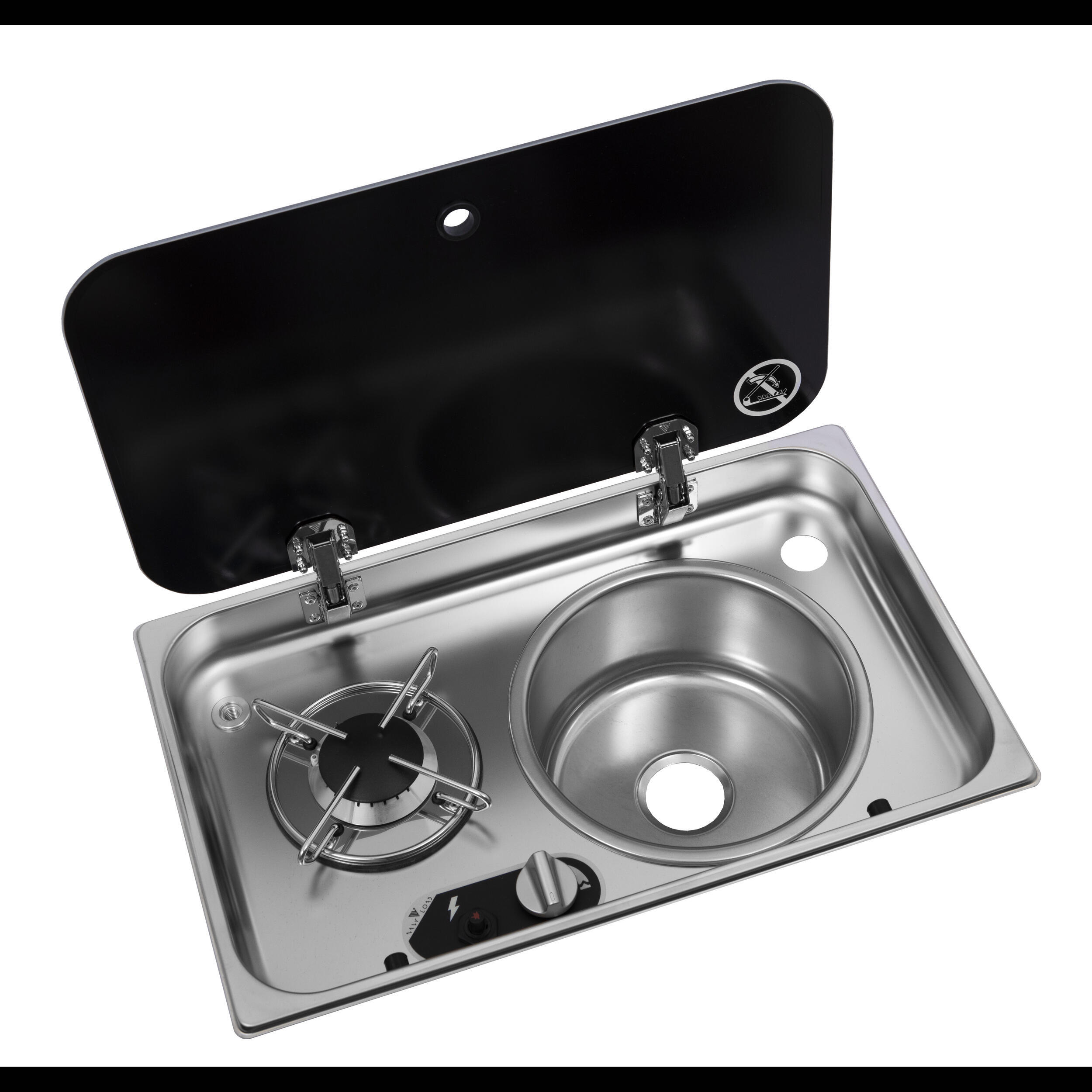 Découvrez notre réchaud à gaz encastrable 1 feu avec évier et couvercle en verre T-Safe, alliant puissance, sécurité et design en acier inoxydable.