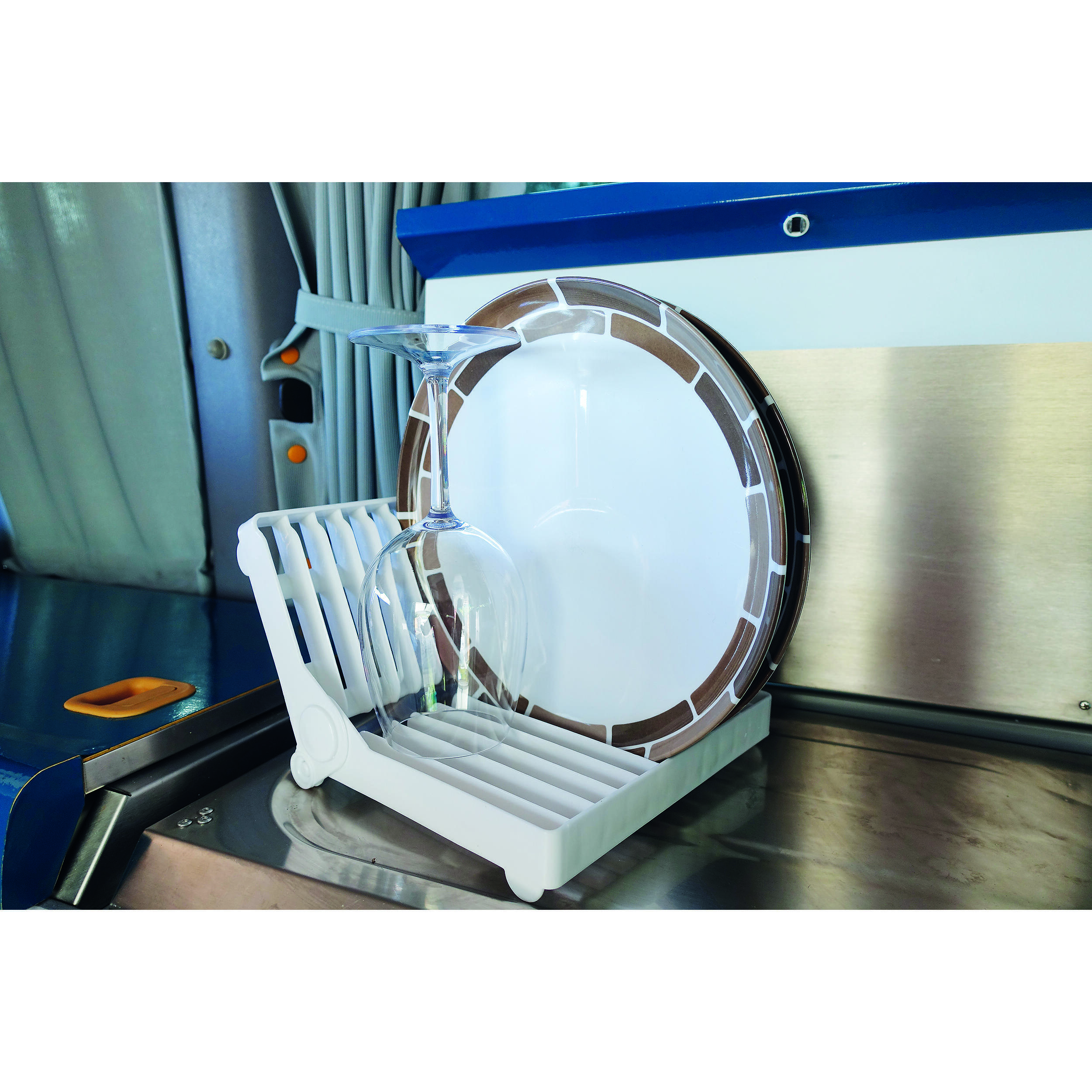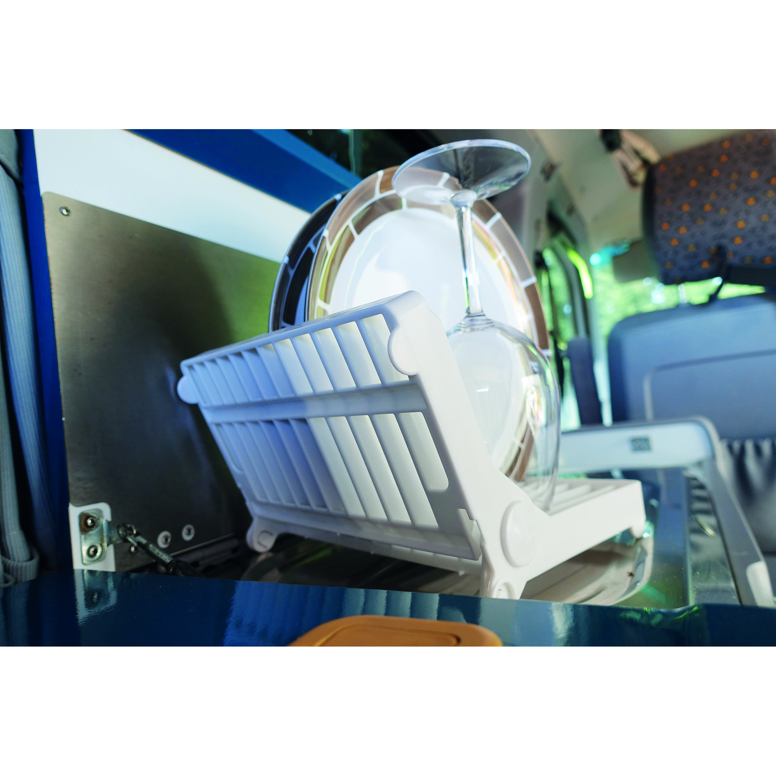 Que vous rouliez en camping-car, en fourgon aménagé ou en caravane, cet égouttoir pliant s’intègre parfaitement à votre espace cuisine. Son design universel et ses dimensions compactes en font un accessoire compatible avec la plupart des configurations, même les plus étroites. Il se pose sans difficulté sur un plan de travail, à côté de l’évier ou dans un espace dédié, sans nécessiter de fixation permanente. Idéal pour les voyageurs qui privilégient la simplicité et l’efficacité, il vous évite d’avoir à improviser des solutions de fortune pour faire sécher votre vaisselle après chaque repas.