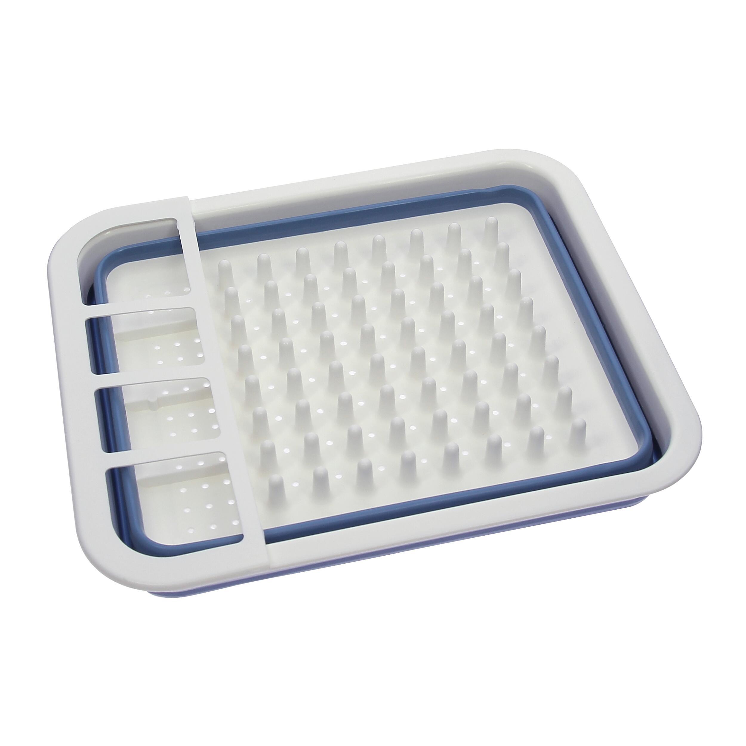 Cet égouttoir vaisselle rétractable d'Incasa permet de sécher vos assiettes, verres et couverts en optimisant l'espace grâce à son design pliable en plastique et silicone.