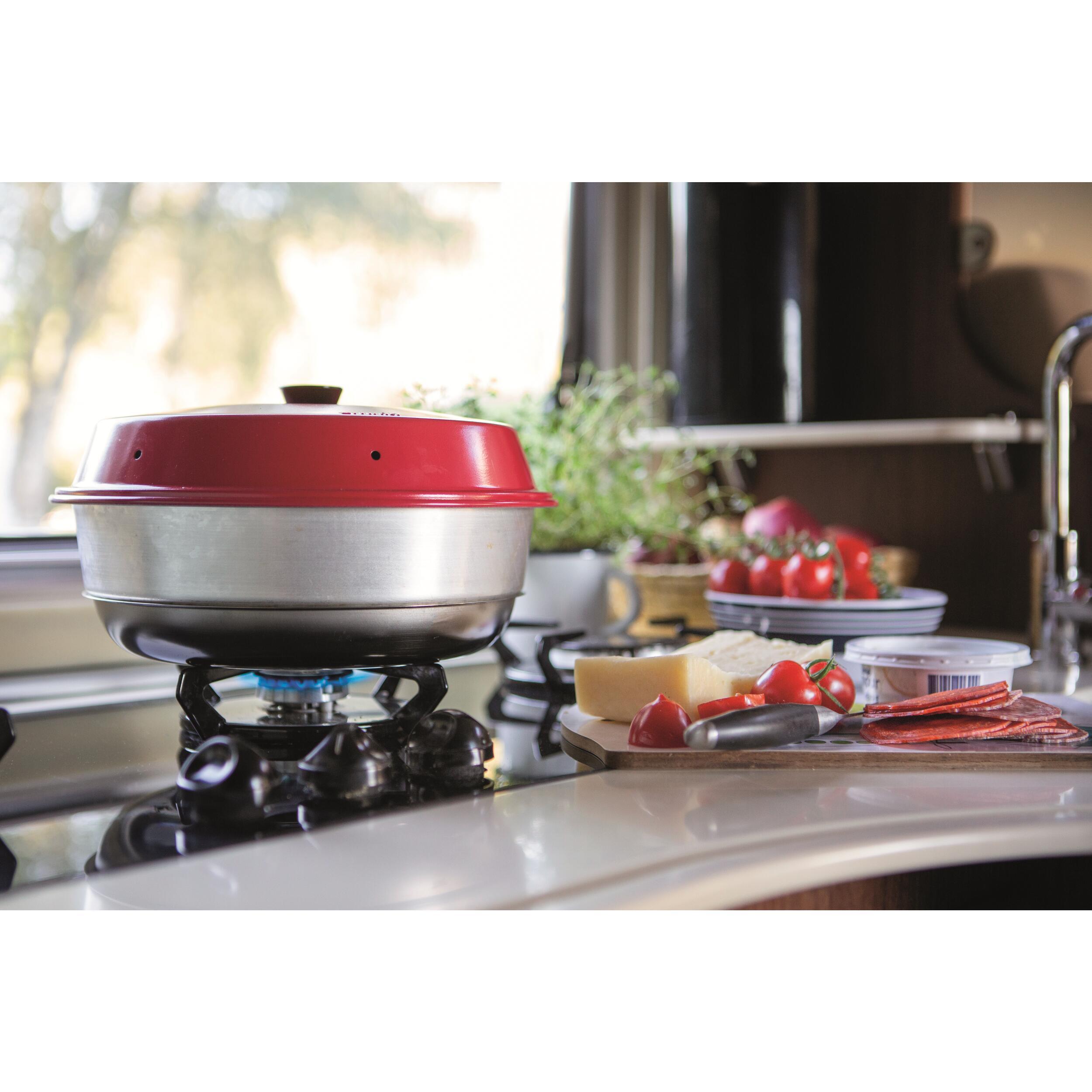 Un four portable, robuste, ingénieux et compact qui vous permet de déguster de bons petits plats variés. Il vous suffit de le poser sur une gazinière ou un réchaud à gaz et la chaleur se propage pour une cuisson douce et homogène.