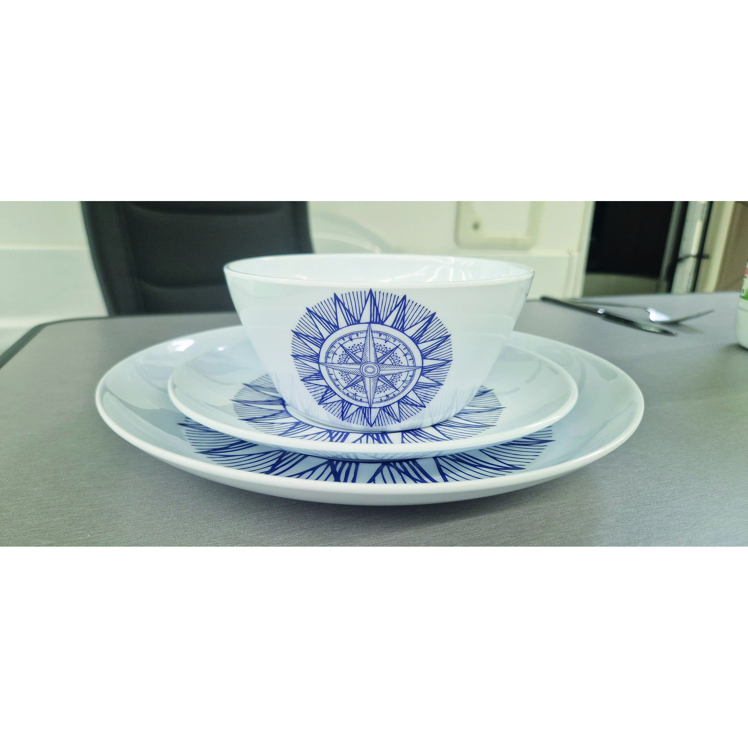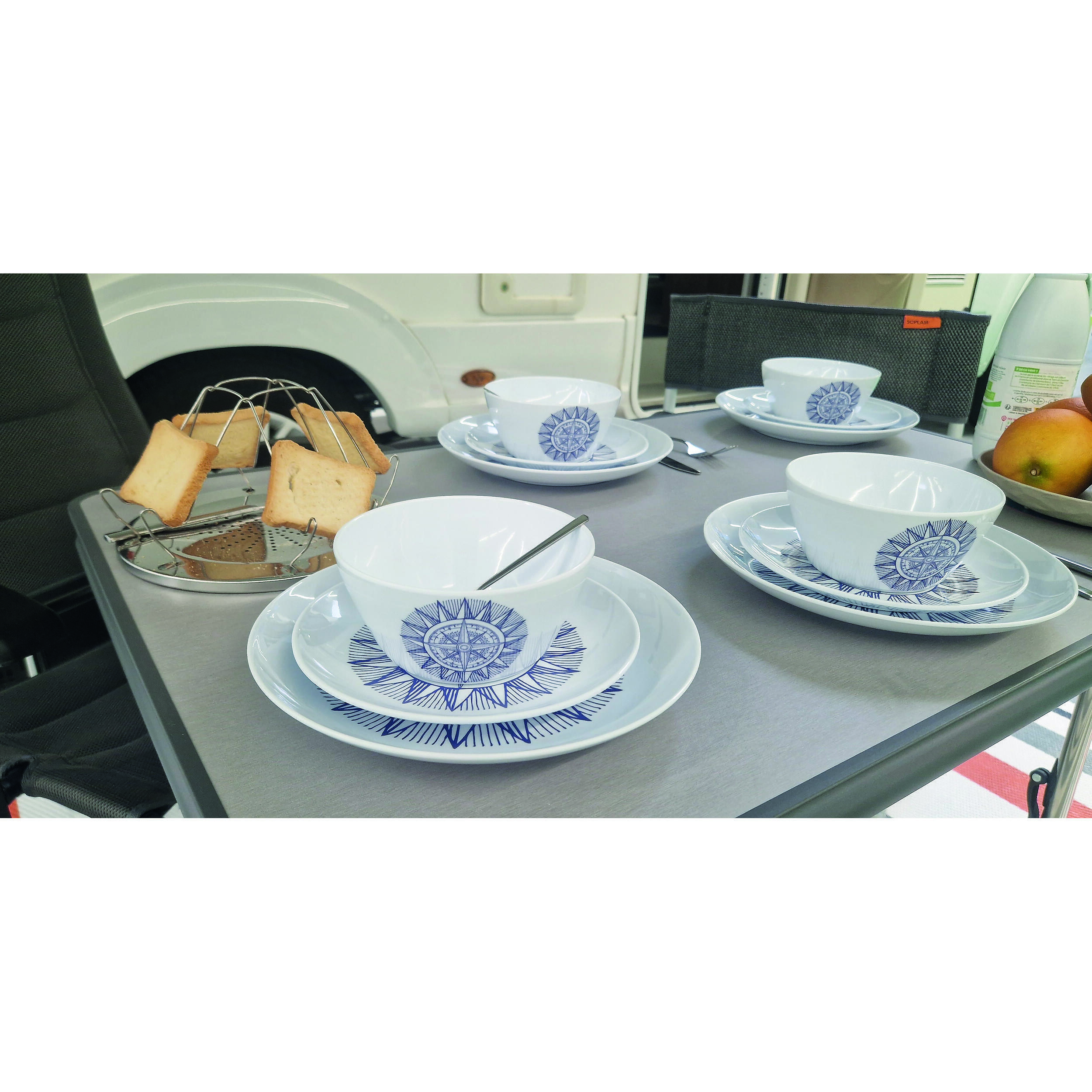 Avec son motif de boussole bleu marine sur fond blanc, ce pack vaisselle apporte une touche d’élégance à vos repas nomades. Le style nautique rappelle les horizons lointains et les escapades en bord de mer, tout en restant sobre et intemporel. Les couleurs résistantes aux lavages successifs conservent leur éclat, même après de nombreux usages. Un choix esthétique qui transforme chaque repas en un moment agréable, où le plaisir des yeux rejoint celui de la table.