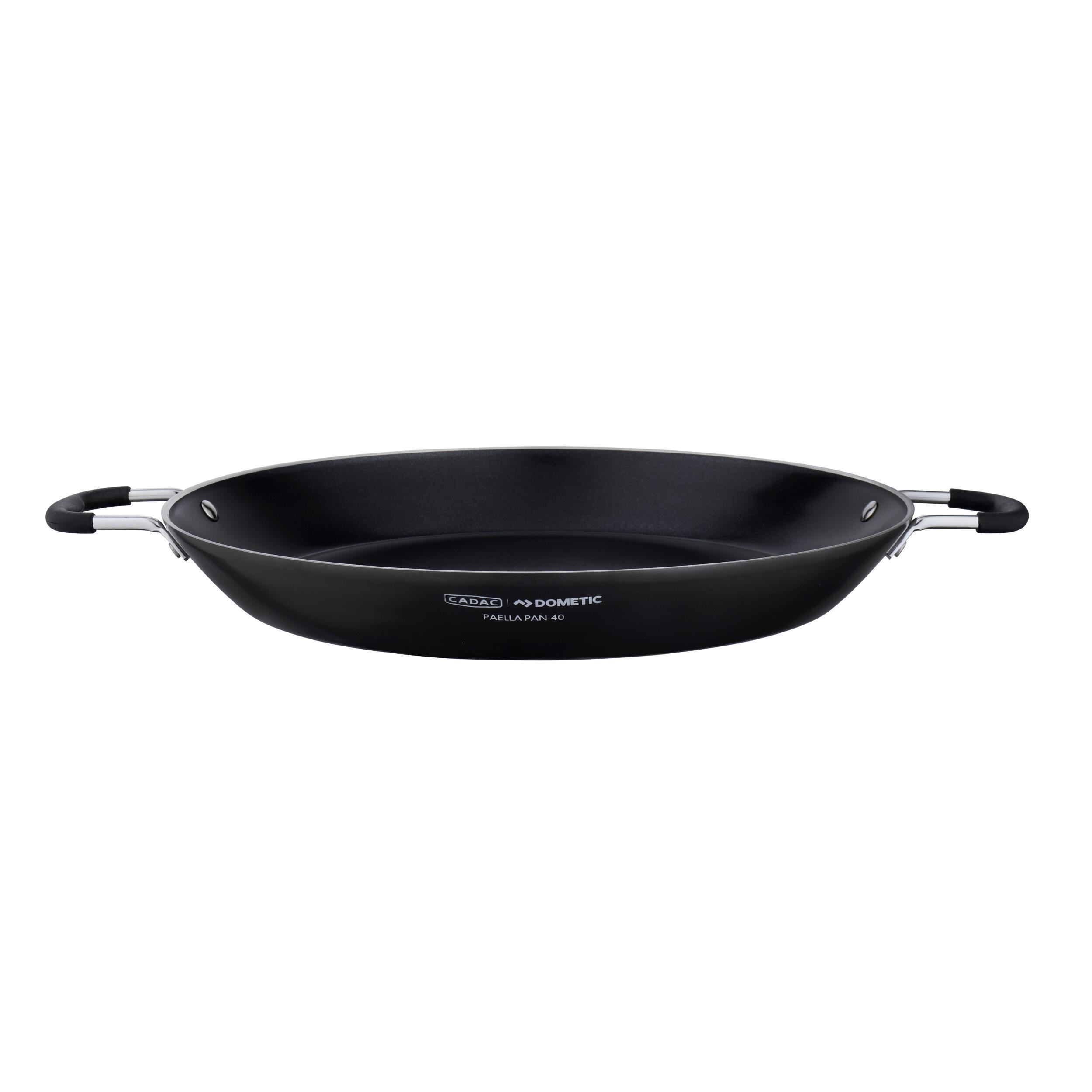 Préparez des plats savoureux avec la Paella Pan 40 de Cadac : un plat multifonctionnel à revêtement GreenGrill, idéal pour cuisiner, frire ou mijoter sur les barbecues Carri Chef 40 et Citi Chef 40. Sac de transport inclus.