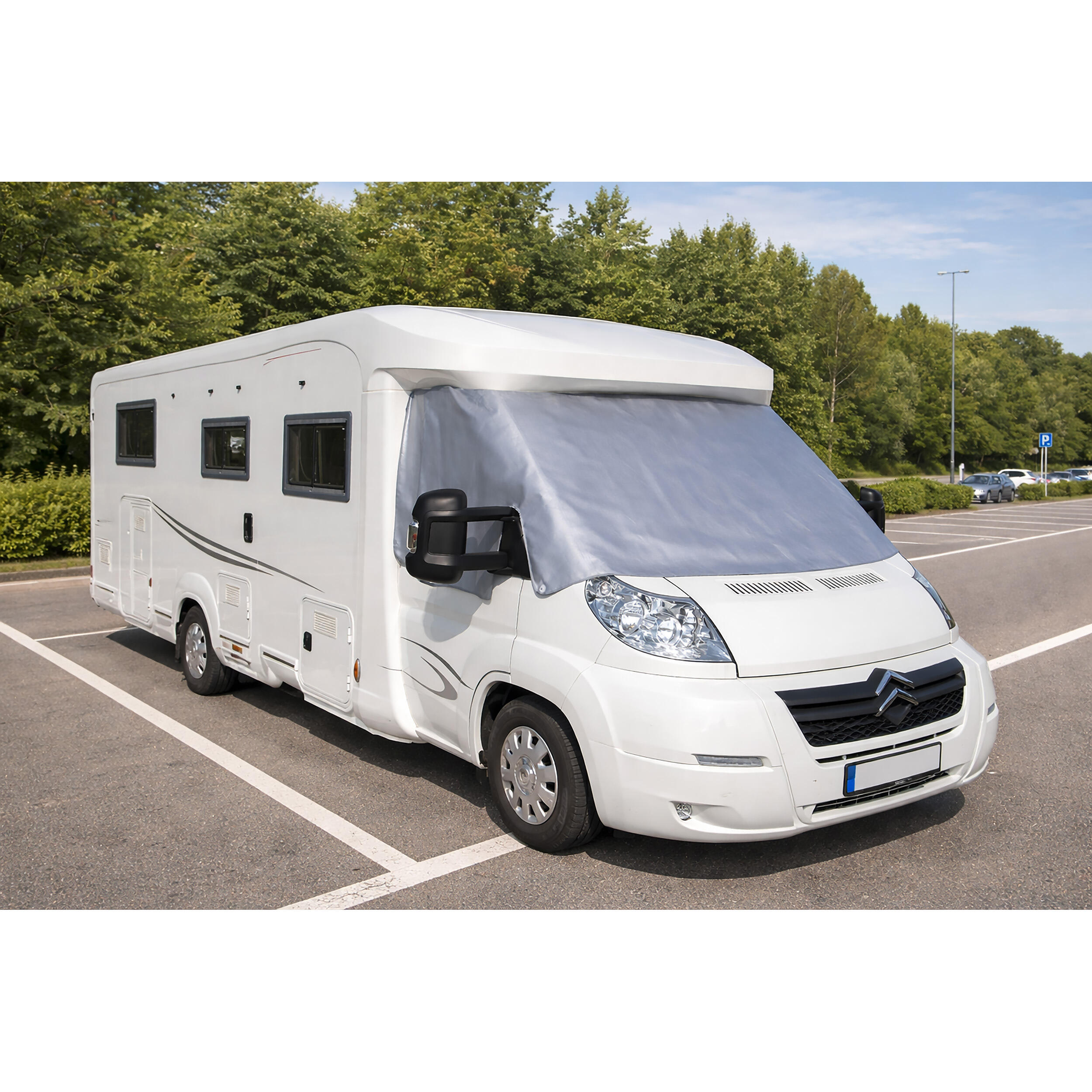 La toile micro-perforée du pare-soleil VISIOPLAIR permet de conserver une vision claire vers l’extérieur, tout en limitant la visibilité depuis l’extérieur du véhicule. Cette caractéristique est particulièrement appréciée lors des stationnements en camping, en aire de services ou en pleine nature.