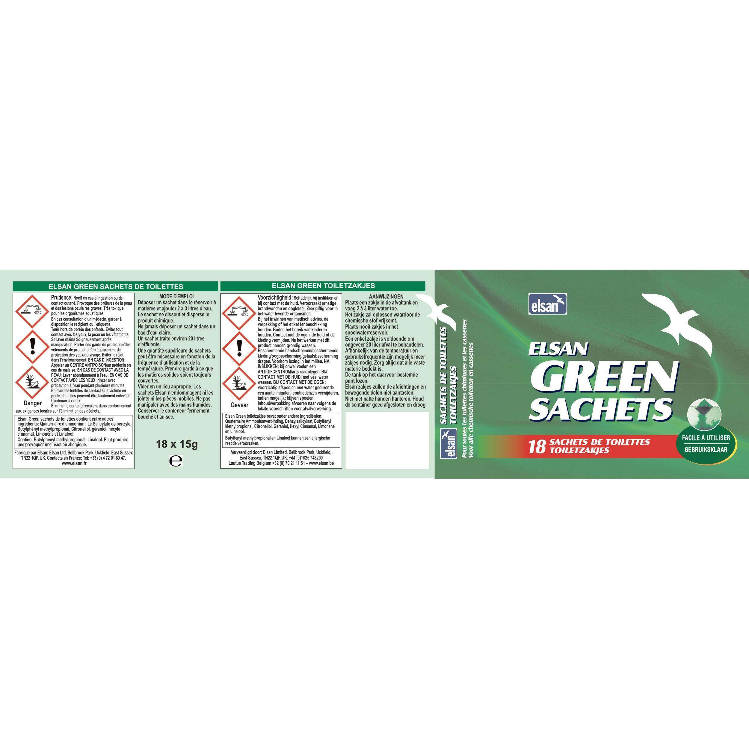 ELSAN 18 sachets verts – L’allié écologique de vos toilettes chimiques Un entretien…