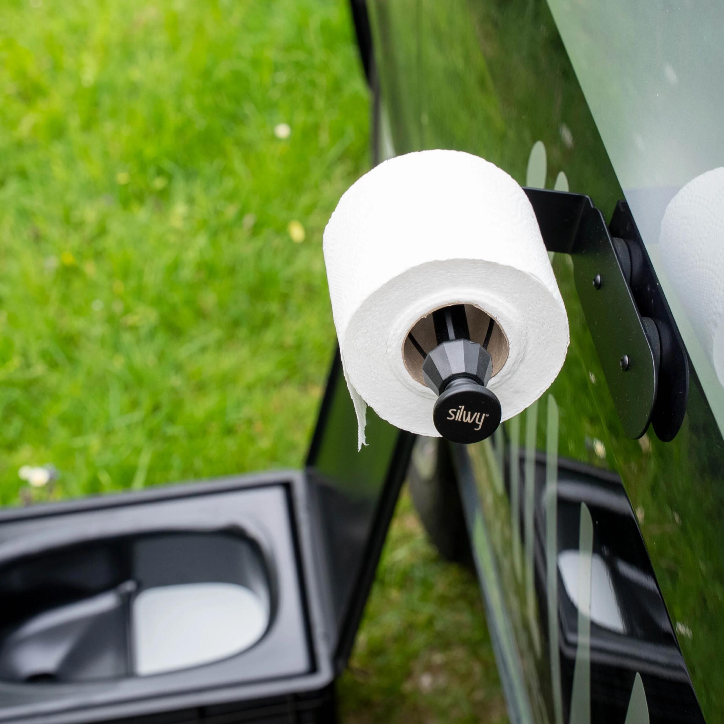 Le porte-rouleau magnétique Silwy peut être utilisé à l’intérieur comme à l’extérieur du véhicule, et convient parfaitement pour les toilettes de camping ou les sanitaires de fourgon aménagé.